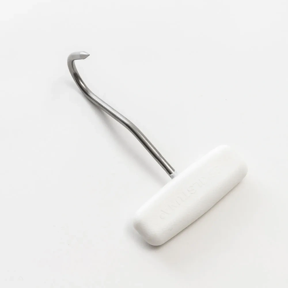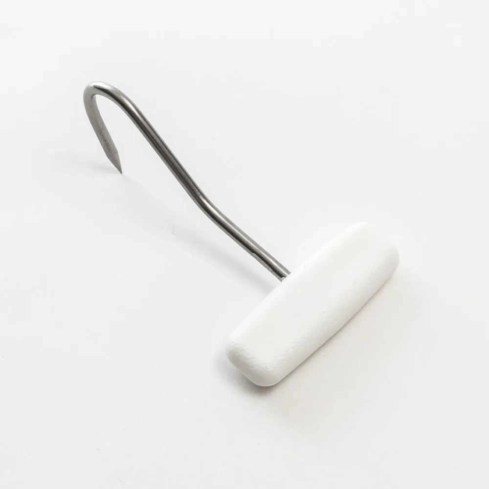 El gancho de acero inoxidable y un mango de polipropileno blanco, es resistente y duradero.
