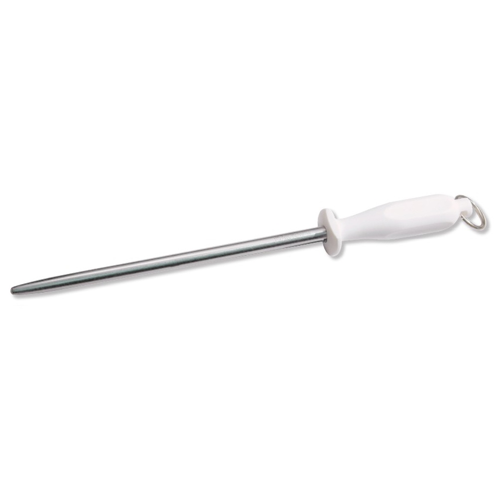 CHAIRA BÖKER TOTALMENTE ALEMANA. Fabricada exclusivamente en Alemania, es una herramienta imprescindible para mantener la capacidad de corte de todo cuchillo. Con una espiga de acero de carbono, ligeramente imantada para atrapar las pequeñas partículas de acero que se desprenden de la hoja durante el chaireado, evitando así toda posibilidad de que éstas queden sobre el filo del cuchllo y se alojen luego en los alimentos. Tiene una sólida capa de cromo/molibdeno que, con su extraordinaria dureza de 64/66 Hrc, es la que reactiva la capacidad de corte de su cuchillo como ninguna otra. Cabo de POLIPROPILENO, es apta para ser esterilizada a temperaturas superiores a los 160 grados centígrados. ESPIGA LISA.