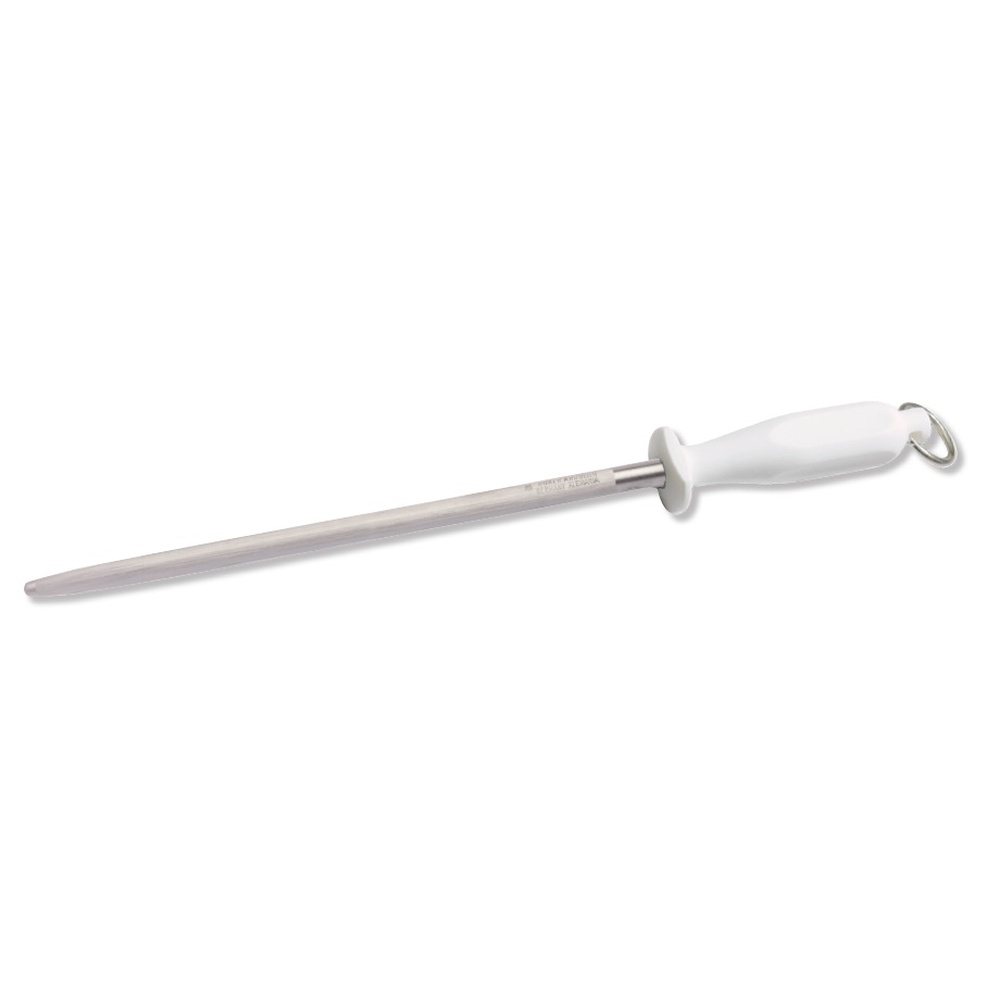 CHAIRA BÖKER TOTALMENTE ALEMANA. Fabricada exclusivamente en Alemania, es una herramienta imprescindible para mantener la capacidad de corte de todo cuchillo. Con una espiga de acero de carbono, ligeramente imantada para atrapar las pequeñas partículas de acero que se desprenden de la hoja durante el chaireado, evitando así toda posibilidad de que éstas queden sobre el filo del cuchllo y se alojen luego en los alimentos. Tiene una sólida capa de cromo/molibdeno que, con su extraordinaria dureza de 64/66 Hrc, es la que reactiva la capacidad de corte de su cuchillo como ninguna otra. Cabo de POLIPROPILENO, es apta para ser esterilizada a temperaturas superiores a los 160 grados centígrados. ESPIGA RAYADA.